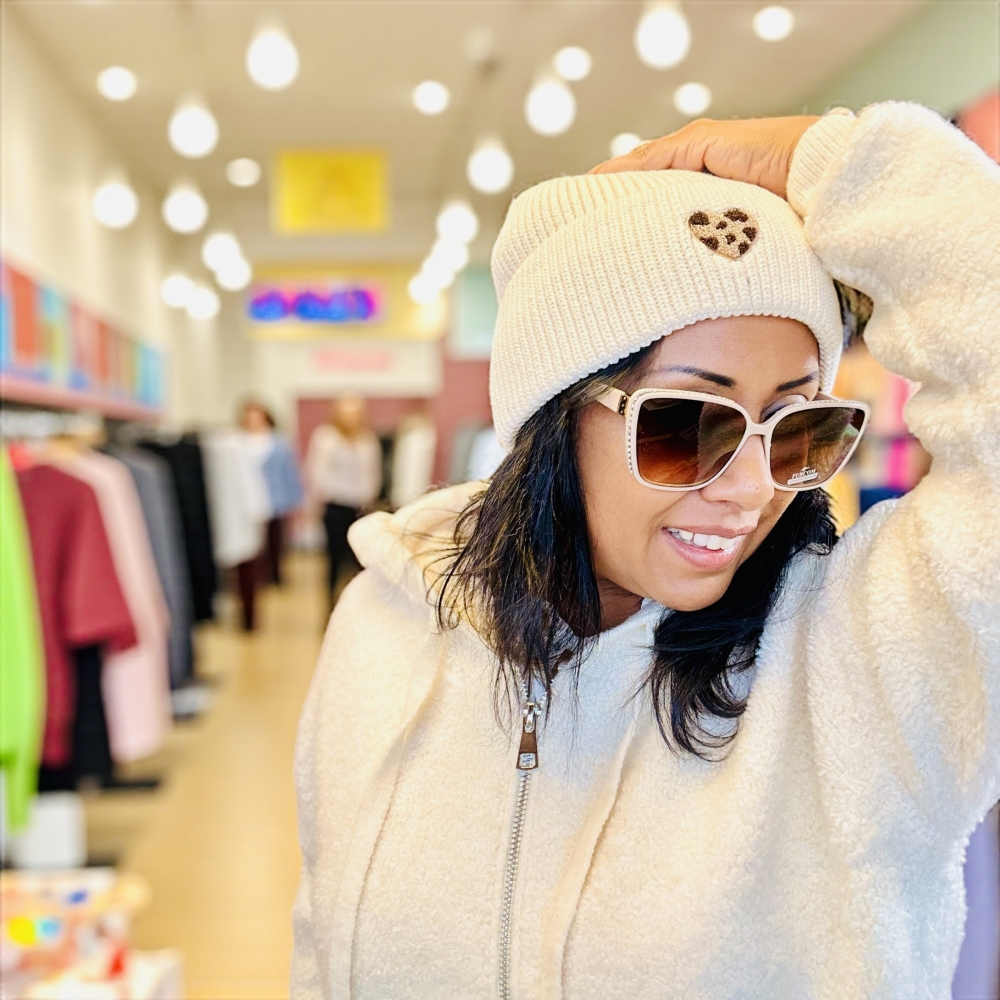 Leo Hjerte lue med leopardhjerte på oppbretten