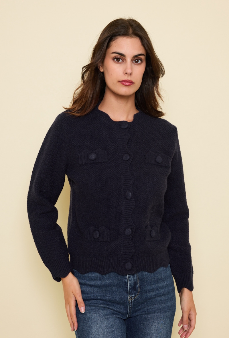 Ullcardigan med bølgekant og ton-i-ton knapper