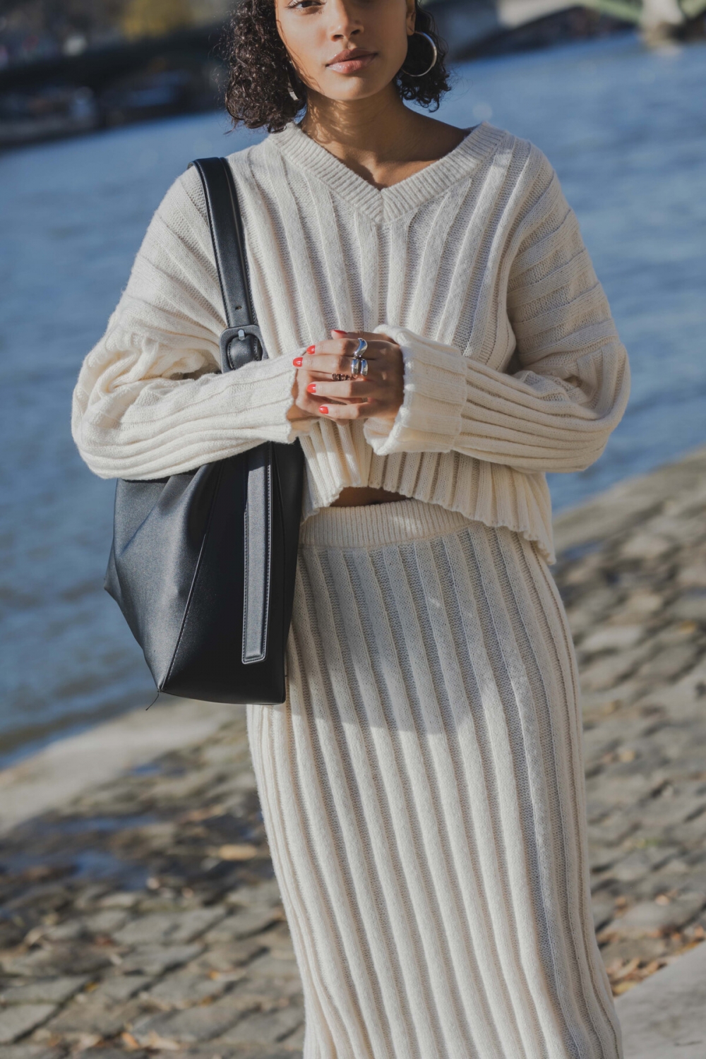 Sett med topp og bukse med 3D-blomster – trendy og feminin