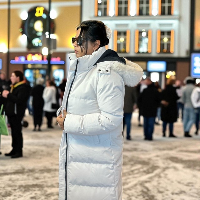 Stilig og varm lang vattert jakke med ståkrage og hette fôret med myk fuskepels. Frontlukking med toveis glidelås og trykknapper gir ekstra vindbeskyttelse. Lange ermer med ribbekanter, rette raglanlommer og rett passform. Helfôret for optimal komfort.