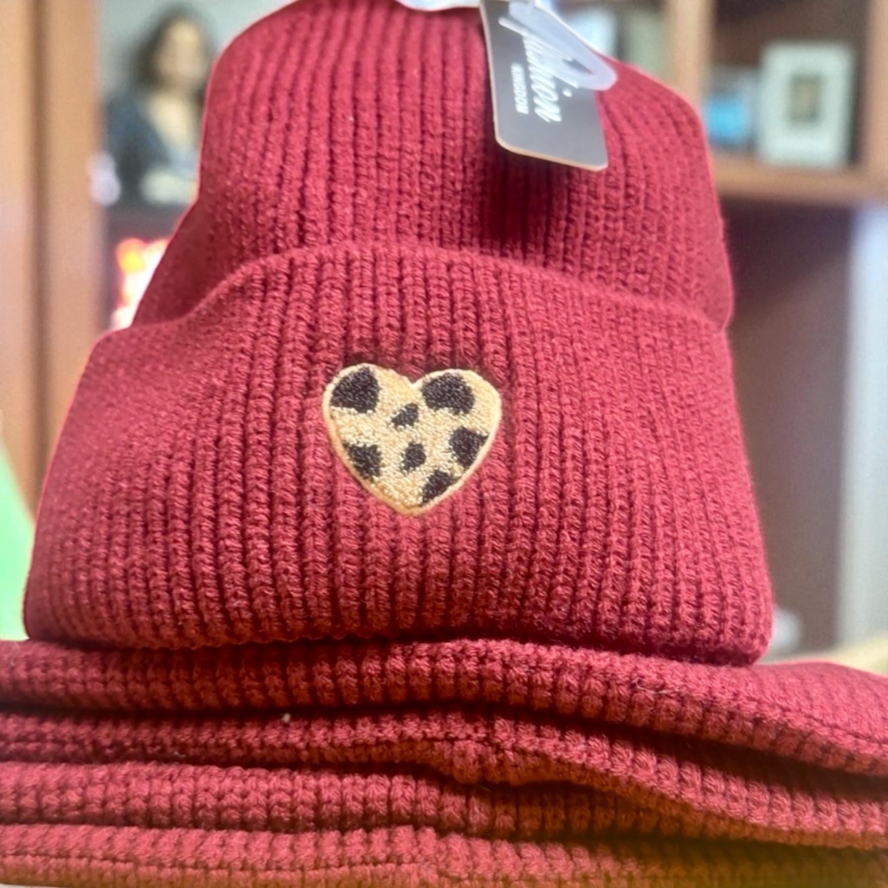 Leo Hjerte lue med leopardhjerte på oppbretten