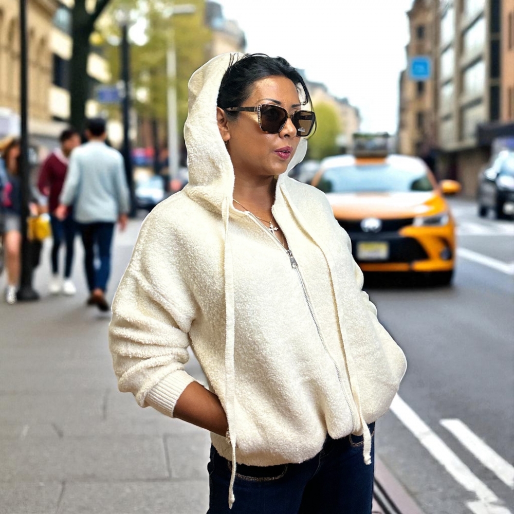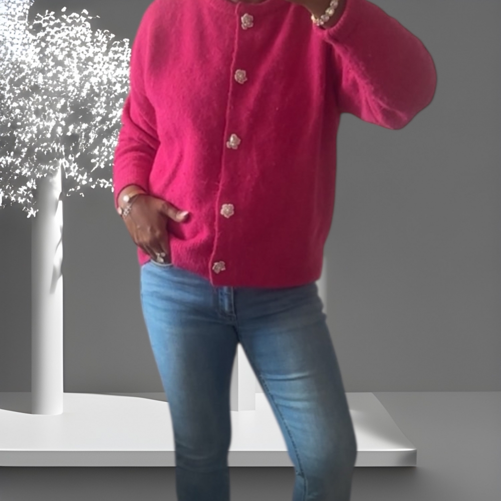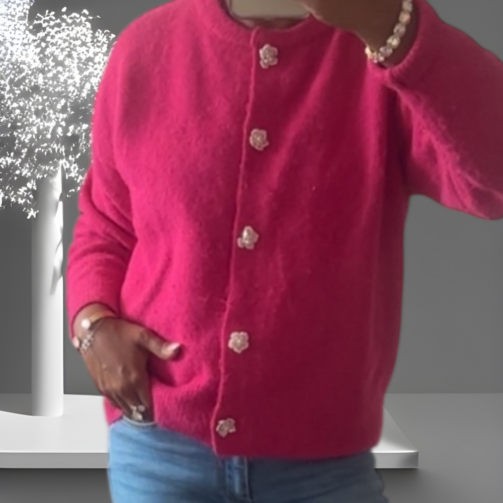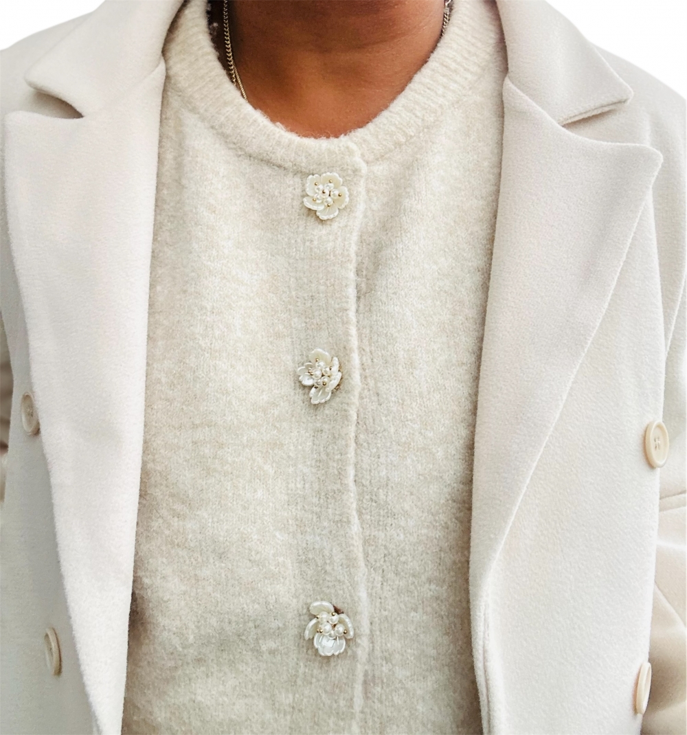 Ullcardigan med bølgekant og ton-i-ton knapper