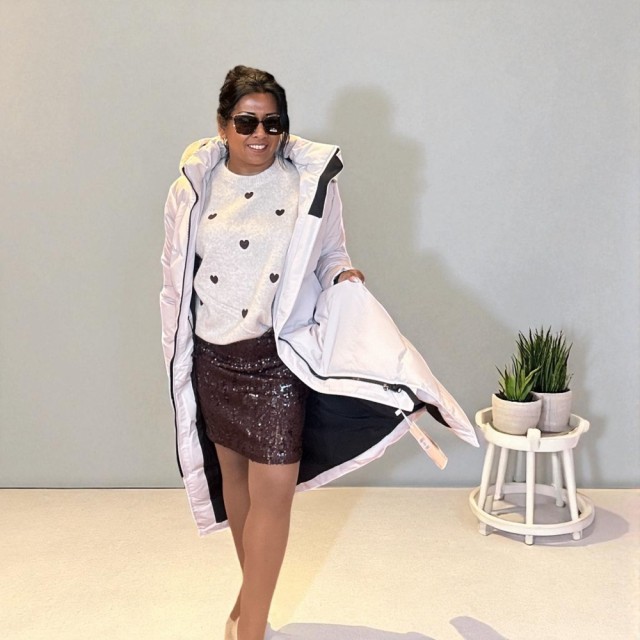 Stilig og varm lang vattert jakke med ståkrage og hette fôret med myk fuskepels. Frontlukking med toveis glidelås og trykknapper gir ekstra vindbeskyttelse. Lange ermer med ribbekanter, rette raglanlommer og rett passform. Helfôret for optimal komfort.