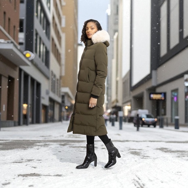 Stilig og varm lang vattert jakke med ståkrage og hette fôret med myk fuskepels. Frontlukking med toveis glidelås og trykknapper gir ekstra vindbeskyttelse. Lange ermer med ribbekanter, rette raglanlommer og rett passform. Helfôret for optimal komfort.