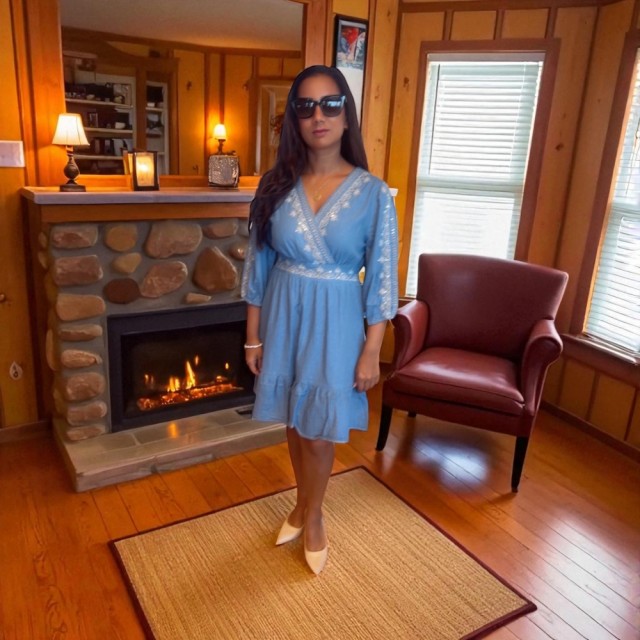 Kjole med denim-look og paljettdetaljer – feminin og komfortabel